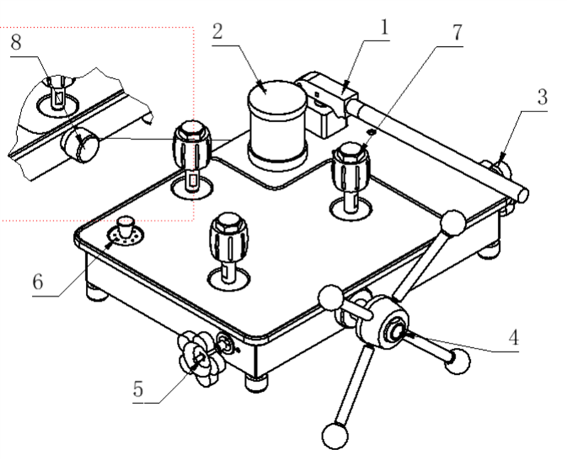該校驗器結構簡單、操作維護方便、不易泄漏、升降壓平穩,采用壓桿式預壓結構,可快速發生所需壓力值,減少因傳壓介質被污染而造成的管路堵塞問題。